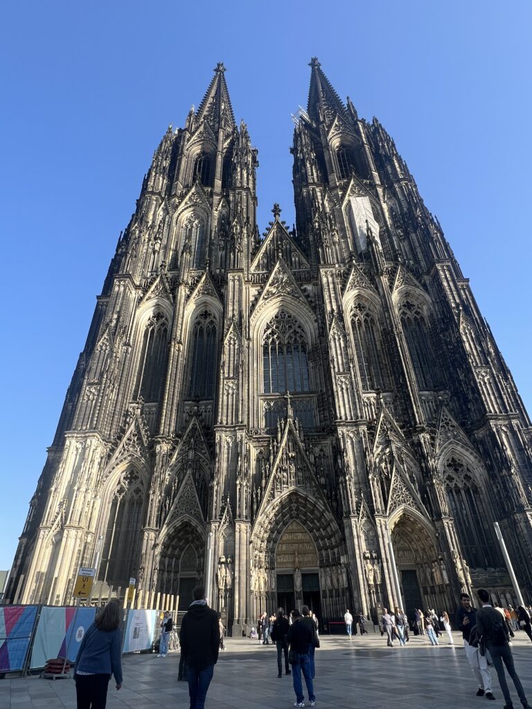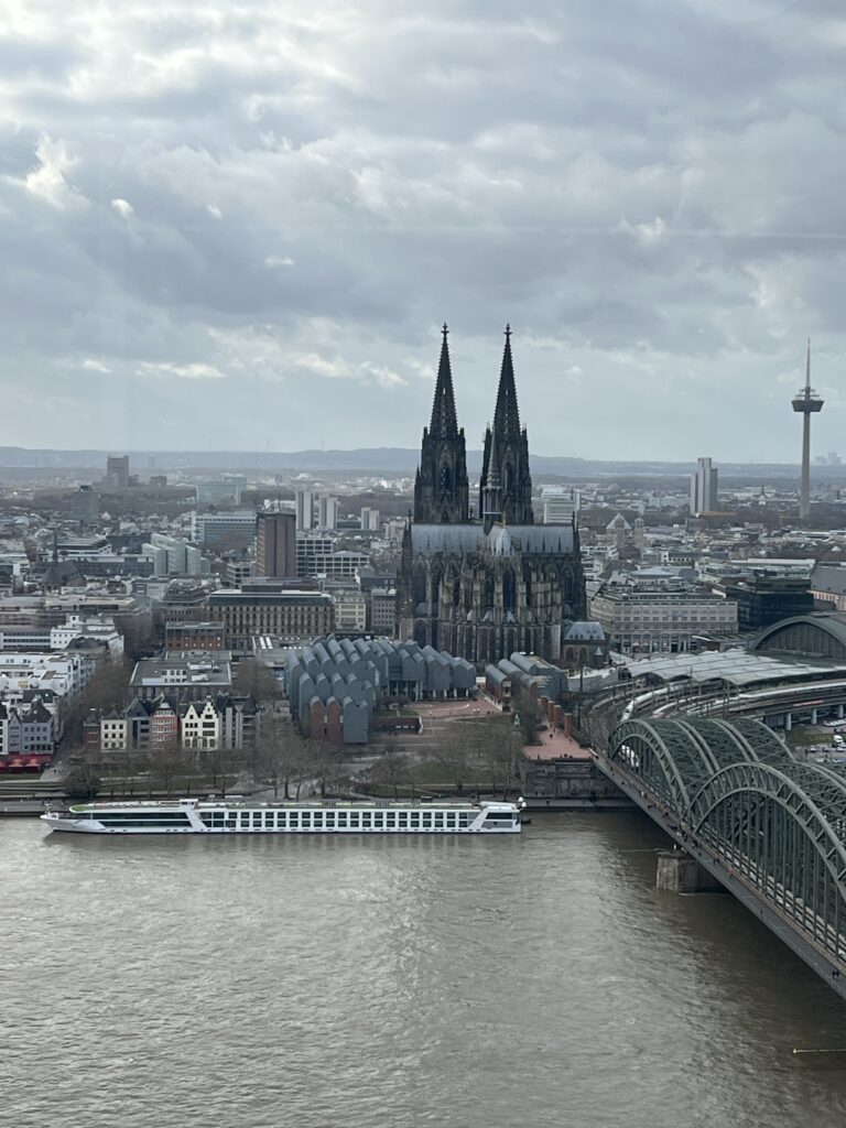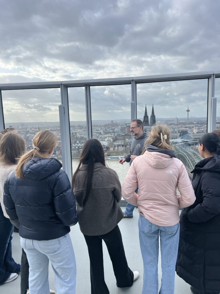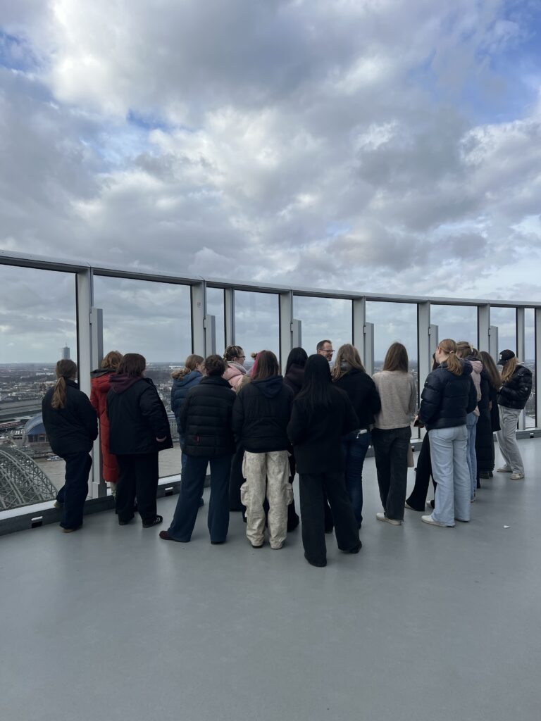 Nach der leicht verspätetenen Anreise mit der Bahn am Montag wurden wir herzlich in der Ursulinenschule begrüßt. Den perfekten Überblick verschafften wir uns direkt zu Beginn: Vom Triangle Tower aus lag uns ganz Köln – inklusive Dom – zu Füßen. Bei Kaffee, Kuchen und einer Schulführung lernten wir die Schule besser kennen, bevor der offizielle Startschuss für unser diesjähriges Projekt fiel und wir den ersten Abend in unseren Gastfamilien verbrachten.