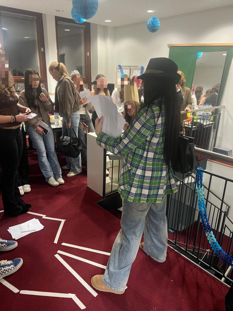 Am Mittwoch tauchten wir in den Kölner Schulalltag ein und besuchten gemeinsam mit unseren Partnerinnen den Unterricht. Der Abend wurde dramatisch (aber nur im besten Sinne): Beim gemeinsamen Krimidinner schlüpften wir in verschiedene Rollen und bewiesen detektivischen Spürsinn.